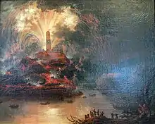 En política y economía, un pueblo Potemkin es cualquier construcción (literal o figurativa) cuyo único propósito es proporcionar una fachada externa a un país al que le va mal, haciendo que la gente crea que al país le va mejor. El término proviene de las historias de una aldea portátil falsa construida únicamente para impresionar a la emperatriz Catalina II por su antiguo amante Gregorio Potemkin, durante su viaje a Crimea en 1787. Si bien los historiadores modernos afirman que los relatos de esta aldea portátil son exagerados, la historia original era que Potemkin erigió asentamientos portátiles falsos a lo largo de las orillas del río Dniéper para impresionar a la emperatriz rusa; las estructuras se desmontarían después de que ella pasara, y se volverían a montar a lo largo de su ruta para ser vistas nuevamente como si fuera otro ejemplo. El término es una traducción del ruso: потёмкинские деревни (IPA: / pɐˈtʲɵmkʲɪnskʲɪɪ dʲɪˈrʲɛvnʲɪ /; romanización: potyómkinskiye derévni).[cita requerida]