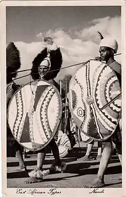 El pueblo nandi es uno de los grupos más numerosos de la etnia kalenjin con casi 1.226.000 miembros que habitan principalmente en Kenia y tierras fronterizas de Uganda.[1][2][3] Sus ancestros más remotos fueron nilóticos de las tierras altas, al este del lago Victoria. Estos emigraron durante el primer milenio a. C. desde el norte del lago Turkana a distintos territorios de África oriental. En esta expansión se mezclaron con otras etnias que les precedían en los nuevos territorios. Probablemente el pueblo nandi no emergió como un grupo étnico distinto hasta después del siglo XVII. Su última escisión conocida fue con el pueblo kipsigi que los historiadores ubican entre los siglos XVII y XIX.[4][5] En 2021 la etnia nandi representaba aproximadamente el 2% del total de la población de Kenia.[6][7] Algunos de los mejores corredores de larga distancia del mundo, galardonados con medallas olímpicas, provienen de las comunidades del pueblo nandi.[1][8][9]
