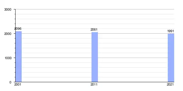 | Gráfica de evolución demográfica de Pueblonuevo del Guadiana[2] entre 2001 y 2021 |