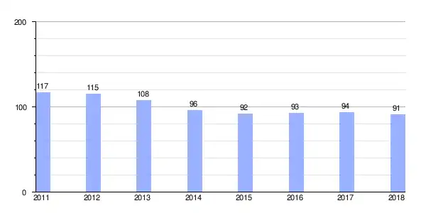 Gráfica de evolución demográfica de A Ponte entre 2011 y 2018