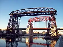 Inaugurado el 5 de octubre de 1940 a escasos metros del antiguo puente transbordador (con el que comparte nombre), su construcción fue una de las primeras obras del mundo en acero y cemento.