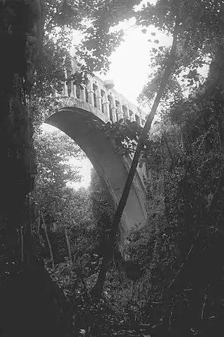 El Puente Blanco es un puente originalmente ferroviario y posteriormente vial que cruza el cañón de la quebrada La Mala en el barrio Terranova, a las afueras del pueblo de Quebradillas, Puerto Rico. Fue diseñado por el ingeniero Etienne Totti, de la American Railroad Company of Puerto Rico, para sustituir el puente de acero que salvaba ese tramo desde 1907 por encontrarse este en malas condiciones.[1] Era parte de la línea principal del Ferrocarril de Circunvalación de Puerto Rico, encontrándose inmediatamente anterior al túnel de Guajataca en sentido descendente. Se utilizó para su construcción un sistema de plataformas que permitió desarmar el puente anterior y construir el nuevo sin interrumpir el paso de los trenes. El nuevo puente, construido a un costo de $18,000 sostenía el paso de dos locomotoras de 84 toneladas cada una. Su uso ferroviario llegó a su fin en 1957, con el cierre del ferrocarril de circunvalación. Fue convertido a uso vial y remodelado en la década de los 1980's.[2] En el año 2008 fue clausurado para su uso por vehículos de motor debido a las malas condiciones en las que se encuentra.