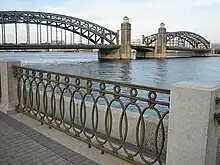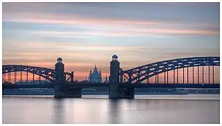 - «Bolsheokhtinsky Bridge» (en inglés). Visit Petersburg. Archivado desde el original el 24 de septiembre de 2018. Consultado el 29 de junio de 2017.