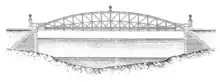 El puente proyectado habría consistido en un gran arco escarzano a cada lado del puente, de dovelas de hierro fundido, con una cuerda de 68 m, una flecha de 17 y 42,50 m de radio; contrarrestado en los riñones por dos arcos botareles de su mismo radio, apoyados sobre pilastras levantadas sobre los estribos ya ejecutados. Los dos arcos estarían arriostrados entre sí mediante otros arcos transversales. Las péndolas para soportar el tablero arriostrado inferiormente, de hierro forjado, se dispondrían cada metro.[8][5]