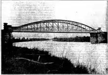 ![]() Vista de la estructura completa del puente sobre el cauce del río Pisuerga, año 2005. | ||