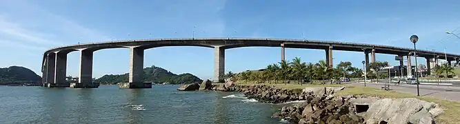 El puente Darcy Castello de Mendonça fue construido para aliviar al el tránsito en los otros puentes. Tiene 3,33 kilómetros de largo, una altura máxima de 70 metros y una luz máxima de 260 metros, lo que permite el acceso de grandes buques a la bahía de Vitória. El primer pilar del puente se comenzó en 1978 durante el gobierno de Elcio Alvares. La obra se terminó en 1989, durante el Gobierno de Max Mauro.[1]
