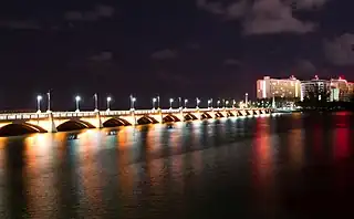 Para ayudar en el proceso de urbanización, los hermanos Behn construyeron una nueva calzada con puentes permanentes para reemplazar la antigua calzada de piedras y madera que unía el sector con la Isleta de San Juan. Ese nuevo puente el pueblo inmediatamente lo llamó puente de Dos Hermanos.[1]
