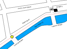 Mapa del lugar del asesinato de los Archiduques en relación con el puente.