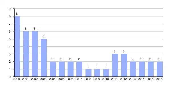 | Gráfica de evolución demográfica de Puente Torres[1] entre 2000 y 2016 |
