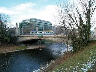 El puente es una los primeros de su tipo, está catalogado como monumento protegido. Fue un proyecto temprano del ingeniero Robert Maillart, que empleó un arco triarticulado realizado con hormigón compactado. La estructura fue construida en 1899 por el maestro de obras de la ciudad Gustav Gull. Como por entonces no era usual diseñar estructuras con el hormigón a la vista, el puente se revistió con losas de granito y arenisca. En los cuatro pilares de las esquinas se situaron unos leones de bronce diseñados por el escultor Urs Eggenschwyler. Su diseño, una vez desprovisto de los paramentos de piedra de carácter ornamental, dio lugar a la tipología del puente de Zuoz realizado dos años después.[2]
