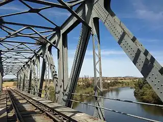 El tramo ferroviario Almorchón-Belmez fue inaugurado en 1868,[1] entonces como un trazado independiente, aunque luego se integraría dentro de la línea Córdoba-Almorchón. Las obras corrieron a cargo de la Compañía de los Caminos de Hierro de Ciudad Real a Badajoz (CRB). Sobre el río Zújar se levantó un puente de hierro, situado en el punto kilométrico 17,403 del trazado ferroviario. La infraestructura tiene una longitud de 107 metros y está sujeta por un pilar central.[2] Se trata de un puente de líneas clásicas, construido en forma de viga cajón en celosía. El principal material empleado es el hierro.