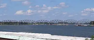 El 31 de octubre de 1895, un terremoto de magnitud 6,6 en la Zona sísmica de Nueva Madrid con epicentro en Charleston (Misuri), agrietó un pilar del puente. El terremoto era el más grande en la zona desde 1812, que con una magnitud de 8,3 fue el mayor terremoto registrado en los Estados Unidos continentales.[2]