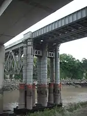 ![]() El puente ferroviario original de Brunel sobre el río Wye en Chepstow, antes de su reemplazo en 1962. | ||