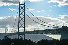 Un puente colgante se caracteriza porque el tablero solo transmite cargas verticales (mediante una serie de péndolas) a los elementos de sustentación, que históricamente comenzaron siendo sogas, luego cadenas, más adelante barras articuladas, y finalmente cables de acero. La principal virtud de los puentes colgantes es a la vez su principal problema: su ligereza.[32] El tablero está asociado a la viga de rigidez, cuya estructura generalmente es una celosía metálica, aunque también se diseñan puentes colgantes cuyo tablero es una viga cajón metálica.
