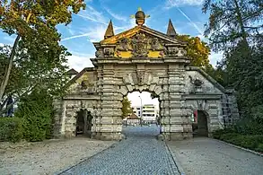 La puerta de Núremberg, construida en 1698, es la única de las cuatro puertas de la muralla renovada que se conserva en la actualidad. La representativa estructura está inspirada en el diseño de la puerta principal de la fortaleza de Rosenberg (1662), en Kronach, incluyendo el friso triangular con las figuras de dos leones sosteniendo el escudo de armas del príncipe-obispo Lothar Franz von Schönborn.[6] Las cabezas de tres bestias están representadas directamente encima de las tres aberturas —la principal y las laterales (más pequeñas)—. Dos pequeños pasillos laterales flanquean la puerta, actualmente cubiertos de vegetación.[3]