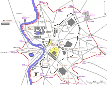 - Porta Aurelia, después rebautizada Porta San Pancrazio, comprendida en la muralla janiculense.