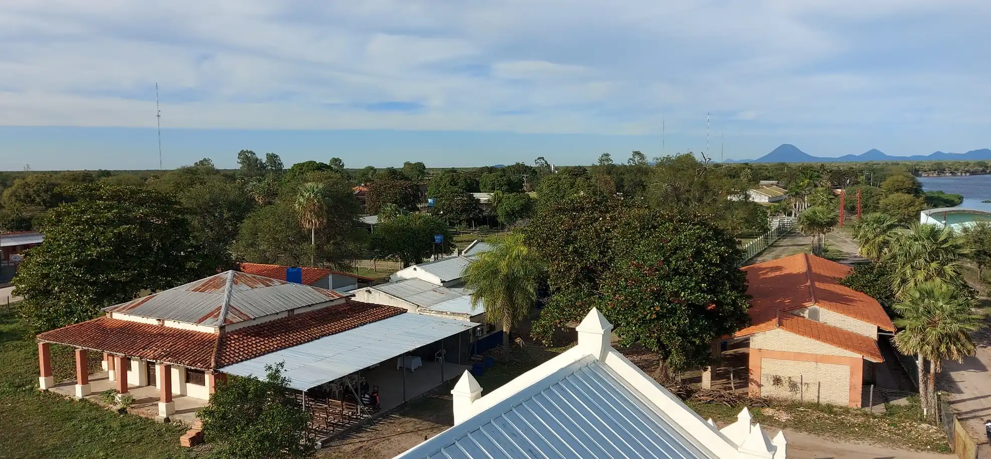 ![]() Centro urbano de Puerto Guaraní (al fondo se puede ver el Cerro de Fuerte Olimpo).