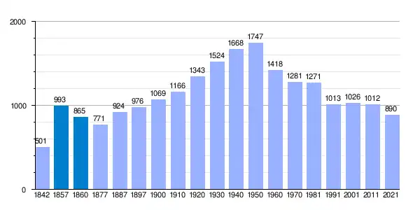 | Gráfica de evolución demográfica de Puerto Lápice[2] entre 1842 y 2021 |