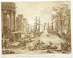 Claudio de Lorena fue un pintor francés establecido en Italia. Perteneciente al período del arte Barroco, se enmarca en la corriente denominada clasicismo, dentro del cual destacó en la pintura de paisaje. En su obra reflejó un nuevo concepto en la elaboración del paisaje basándose en referentes clásicos —el denominado «paisaje ideal»—, que evidencia una concepción ideal de la naturaleza y del propio mundo interior del artista. Esta forma de tratar el paisaje le otorga un carácter más elaborado e intelectual y se convierte en el principal objeto de la creación del artista, la plasmación de su concepción del mundo, el intérprete de su poesía, que es evocadora de un espacio ideal, perfecto.[1]