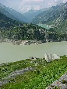 • Grimselsee 1909 m, que se encuentra en la continuidad del Glaciar del Unteraar, un glaciar que se sitúa al lado bernés y bordea la frontera.