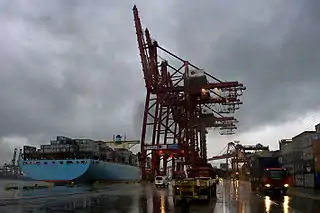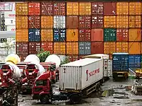 ![]() Camiones transitando en el Puerto de Hong Kong | ||