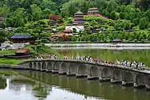 • La Ventana del mundo: Contiene réplicas de lugares y de diversos edificios del mundo y la puesta en escena de danzas y coreografías de múltiples países. Hay en total 118 réplicas, como las pirámides de Egipto, el Gran Cañón de Estados Unidos, el Arco del Triunfo o la torre Eiffel de París, que tiene una altura de 108 metros, la tercera parte de la real.