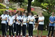 Uniformes escolares de Shenzhen. Shenzhen cuenta con un uniforme escolar estandarizado para toda la ciudad para las escuelas primarias y secundarias. Los uniformes presentan una combinación de colores azul y blanco, con los colores invertidos para niños y niñas. Este conocido conjunto de uniformes es representativo de los uniformes de los estudiantes chinos. A menudo es usado por celebridades de Internet y personajes de anime[19].