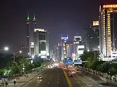Shenzhen es un importante centro de fabricación en China. En la década de los 90, fue descrita como la construcción de "un rascacielos de un día y un boulevard cada tres días".[17] En la actualidad cuenta con 26 edificios de más de 200 metros de altura, incluyendo el Kingkey 100 (el noveno edificio más alto del mundo), y Shun Hing Square (el 19.º edificio más alto del mundo).[18]