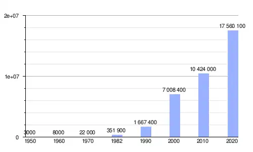 Gráfica de evolución de Shenzhen entre 1950 y 2020