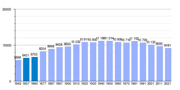 En 2015 tenía una población de 2076 habitantes (1040 hombres y 1036 mujeres). Es un núcleo urbano, más concretamente una villa, considerada así desde 1773.