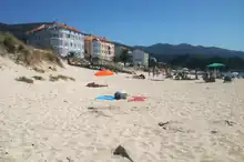 - La playa de Queiruga tiene una extensión de 1200 , es de arena dorada, de fuerte oleaje y tiene una ocupación media.