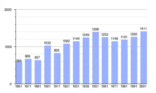 | Gráfica de evolución demográfica de Puglianello entre 1861 y 2001 |