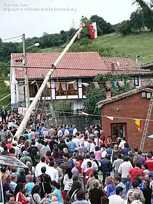 El alzamiento se produce el día anterior a la festividad propia, es decir, el 9 de agosto, cuando durante la tarde, los mozos del pueblo se reúnen en la plaza y levantan a pulso la Maya que han estado preparando previamente. Cuando la Maya queda totalmente izada, comienza la primera noche de verbena.
