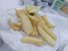 Ligado con la actividad económica más sobresaliente de esta localidad, la pesca, se encuentra su gastronomía pues destacan la gamba blanca, la coquina, el choco, ... de manera que los platos típicos son las coquinas, la gamba cocida o a la plancha, el choco a la brasa, la plancha o guisado con papas o habas o el arroz con choco, también son destacables los pescados a la brasa: la caballa, la sardina, la anchova, el pulpo, la corvina, las almendritas, el pargo, ... Los guisos marineros o los arroces son muy recomendables.