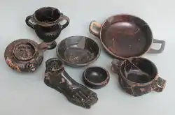 Las concentraciones de cerámica de cocina y vajilla de mesa, los molinos y los hogares, y los hallazgos de quemaperfumes o figuras de terracota en algunos de los departamentos, revelan la existencia de actividades domésticas cotidianas tan diversas como las culinarias o las prácticas rituales. Destacan por su calidad y relevancia las piezas de ajuar de mesa de barniz negro importadas de ámbitos áticos o itálicos y los pebeteros votivos representando a la diosa Deméter/Tanit.