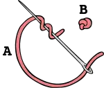 - Esta obra contiene una traducción derivada de «Knotted stitch» de Wikipedia en inglés, publicada por sus editores bajo la Licencia de documentación libre de GNU y la Licencia Creative Commons Atribución-CompartirIgual 4.0 Internacional.