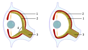 El punto ciego existe en los humanos y otros animales, pero no en todos. La evolución del ojo comenzó hace 540 millones de años. La aparición del primer ojo con una genuina formación de la imagen provocó una fuerte competición, que favoreció la evolución simultánea de diversos tipos de ojos. Los ojos de los calamares y sepias son un ejemplo de ojos similares a los humanos por convergencia evolutiva, pero que evitan la formación de un punto ciego.