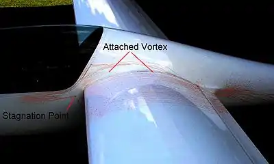 En un cuerpo aerodinámico totalmente inmerso en un flujo potencial, hay dos puntos de estancamiento—uno cerca del borde de ataque y otro cerca del borde de salida. En un cuerpo con un punto agudo, como el borde de salida de un ala, la condición de Kutta especifica que un punto de estancamiento se encuentra en ese punto.[3] Las líneas de corriente en un punto de estancamiento son perpendiculares a la superficie del cuerpo.