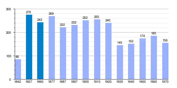 | 1842 | 1857 | 1860 | 1877 | 1887 | 1897 | 1900 | 1910 | 1920 | 1930 | 1940 | 1950 | 1960 | 1970 | 1970 | ||||||||||||||