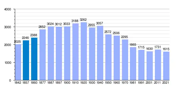 | Gráfica de evolución demográfica de Purchena[7] entre 1842 y 2021 |