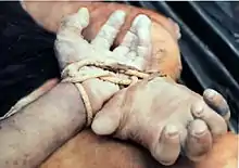 Putrefacción en manos humanas después de varios días bajo el agua en Florida, Estados Unidos