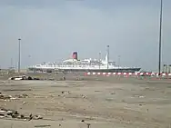 ![]() El Queen Elizabeth 2 fotografiado en el puerto de Dubái, en marzo de 2020 | ||