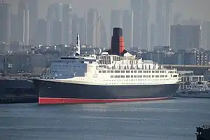 El RMS Queen Elizabeth 2, también conocido simplemente como QE2, es un transatlántico operado por Cunard Line entre 1969 y 2008. Desde de su retirada del servicio, es propiedad de Nakheel (una división de Dubai World).
