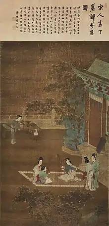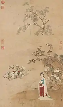 Sus temas no religiosos son principalmente mujeres en su tiempo libre: jugar xiangqi bajo flores de ciruelo, jugar un guqin bajo árboles wutong, sentarse en un escritorio o jugar con un loro. También pintó mujeres que celebraban el Qi xi, que es un festival en honor a la Sirvienta Tejedora, el espíritu patrón del trabajo de las mujeres, equivalente a la tejedora Ariadna occidental.[2]