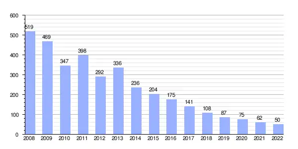 | Gráfica de evolución de Deuda viva del Ayuntamiento de Quéntar entre 2008 y 2022 |