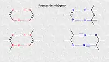 Esta interacción ocurre entre especies donadoras parcialmente negativas con otras aceptoras de protones y un hidrógeno localizado entre ellas. Se considera que los puentes de hidrógenos con geometría lineal son más fuertes por lo que el requisito de direccionalidad lo hace selectivo al momento de formar complejos por lo que dentro de la química Supramolecular se considera la inteacción que será responsable de un ensamble organizado y estable pero es difícil hacerlo en un sistema acuoso dado que el agua es un excelente donador y aceptor de puentes de hidrógeno