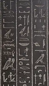 . Nótese como el jeroglífico vertical para reed-(la i para 'Amón') es realmente parte del bloque, aunque esté a su lado.