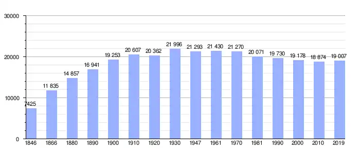 | Gráfica de evolución demográfica de Quaregnon entre 1846 y 2019 |