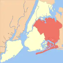 Condado de Queens dentro del Estado de Nueva York, en rojo.