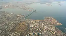El puente Throgs Neck que une Queens y el Bronx (al fondo).